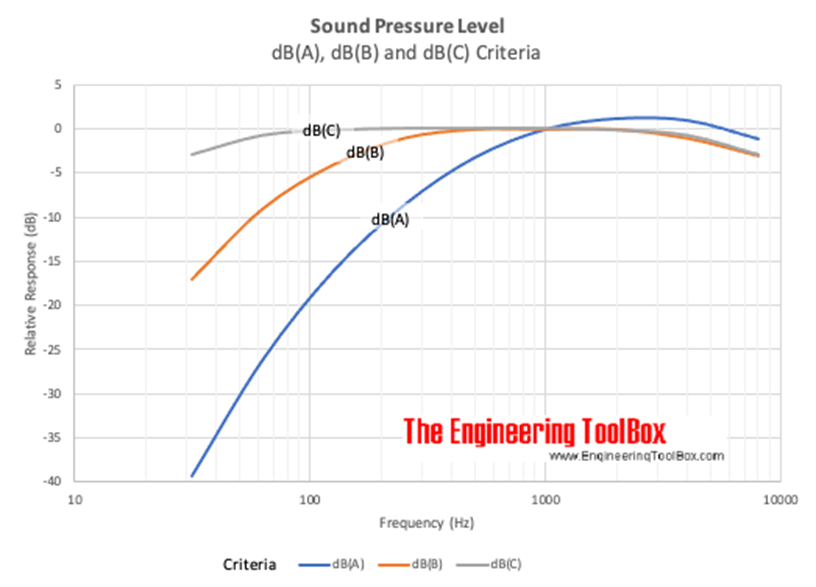 A加权曲线是基于40 Phon的Fletcher-Munson Equal Loudness Contour,当量测较低位准的声音时,建议使用它较佳。