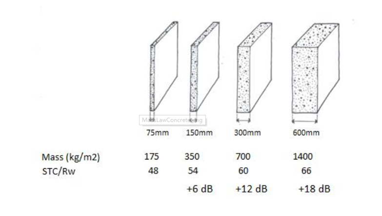 墙体越重空气声隔声越好。面密度增加一倍,隔声量增加6B。