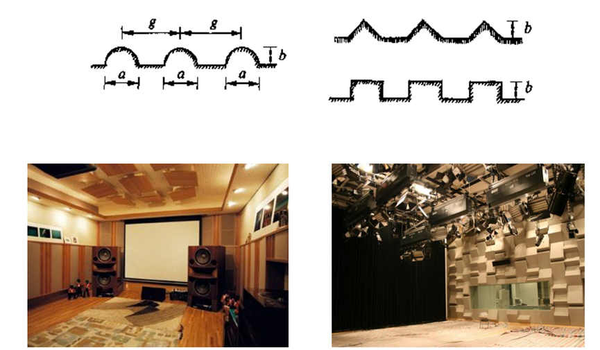 吸声结构:材料本身可以不具有吸声特性,但材料制成某种结构而产生吸声。如穿孔石膏板吊顶。