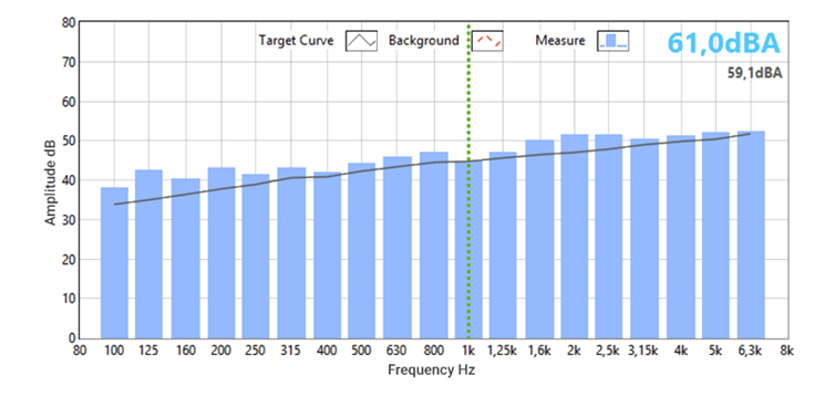 所以每个分数倍频带代表的是呈现在该频段上所有频率的能量总和。这就是为什么在带状视图上粉红噪声看起来是平直的,但是如果看线性间隔的FFT数据,就会看到信号每倍频程下降3dB或每十倍频程下降10dB。随着频率上升,每一个单独的FFT段数据包含的能量越来越少,但是每一个倍频带包含的频率范围变为两倍,所以所有的频带相加成数值相等的分贝值(理想的粉红噪音信号)。